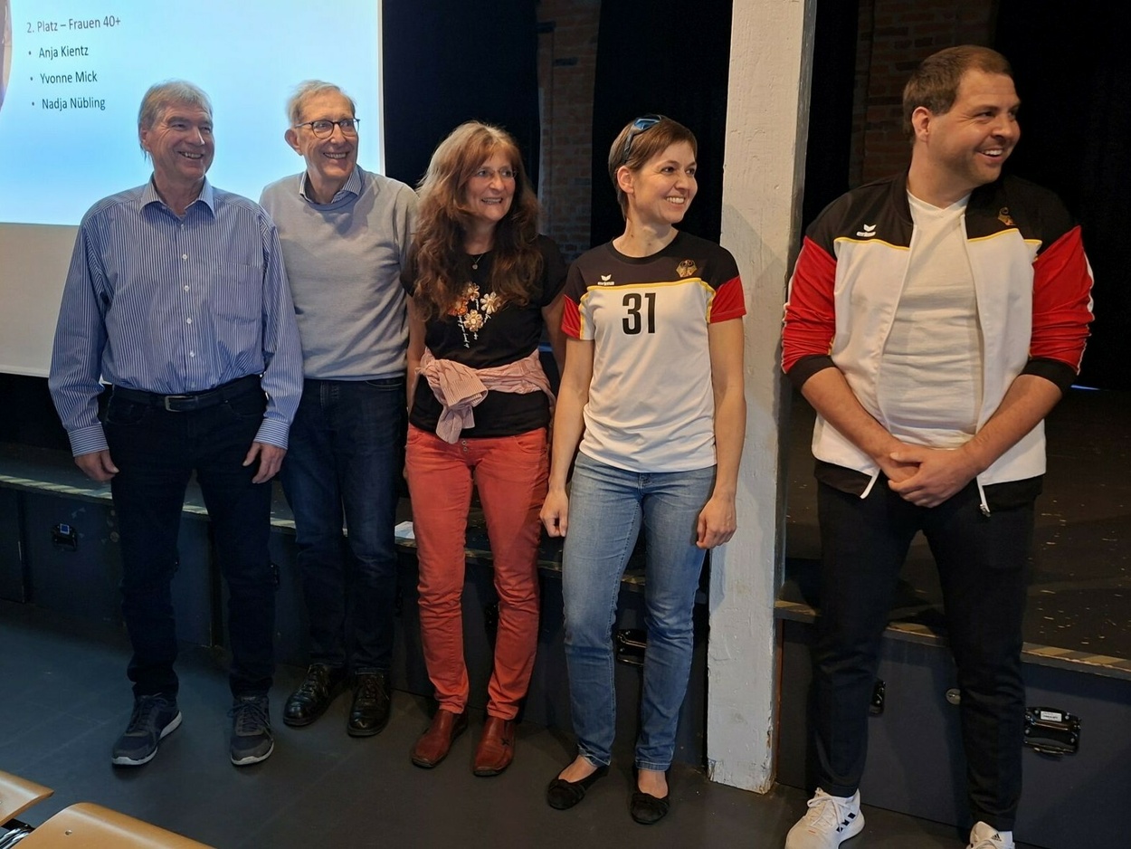 Fotogalerie 1: Die CVJM-Indiaca-Gruppe (von links): Gerhard Rappold, Hartmut Nübling, Nadja Nübling, Anja Kientz (Vizeweltmeisterin Frauen +40), Andreas Nübling (Weltmeister Mixed + 40).