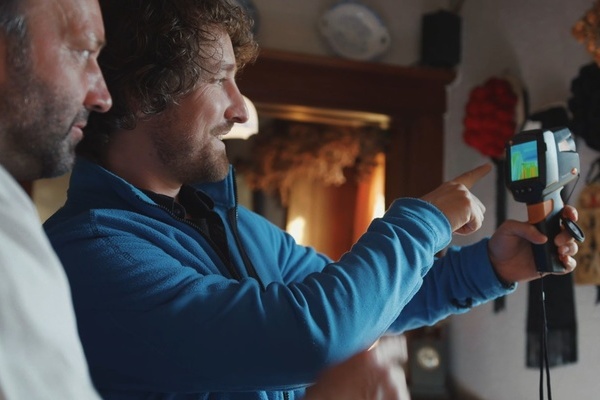 Foto: Effizienzmoderator Jannis Klonk beim KEFF-Check mit Wärmebildkamera