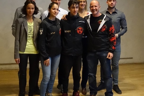 Gemeinsam mit Sportarbeitskreissprecher Robert Reichinger würdigt Bürgermeister Markus Hollemann AmateursportlerBadische Meister, Landesmeister, Deutsche-, Europa- und sogar Weltmeister wurden am Freitag, 22.03.2019 von der Gemeinde Denzlingen und dem Sportarbeitskreis im Kultur & Bürgerhaus geehrt. Musikalisch umrahmt wurde die Feier vom Flöten-Ensemble „take 4“. Das Ensemble bestehend aus Thomas Herrel, Johanna Müller, Sarah Reinbold und Anne Zenker. Die jungen Musiker bilden seit 2016 eine feste Formation als Quartett „take 4“ und erspielten 2017 den 1. Preis beim Landeswettbewerb „Jugend musiziert“. Kultur und Sport waren somit wieder vorbildlich und vor allem sehr beeindruckend vereint.
