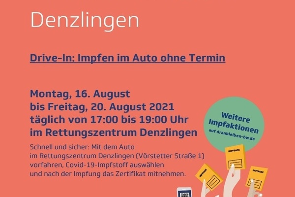 In Denzlingen wird kommende Woche vom mobilen Impfteam des Landratsamts Emmendingen an fünf Tagen eine schnelle und unkomplizierte Drive-In-Impfung angeboten.| Fon | +49 (7666) 611-0 |